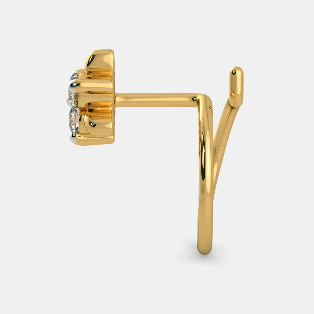 Celebrate your milestone with The Enchanted Freesia, a chic 0.1 carat round white diamond nose pin featuring a floating illusion setting. Fully customizable to your preferred metal and tone. Looking for timeless elegance? Explore more exquisite styles.