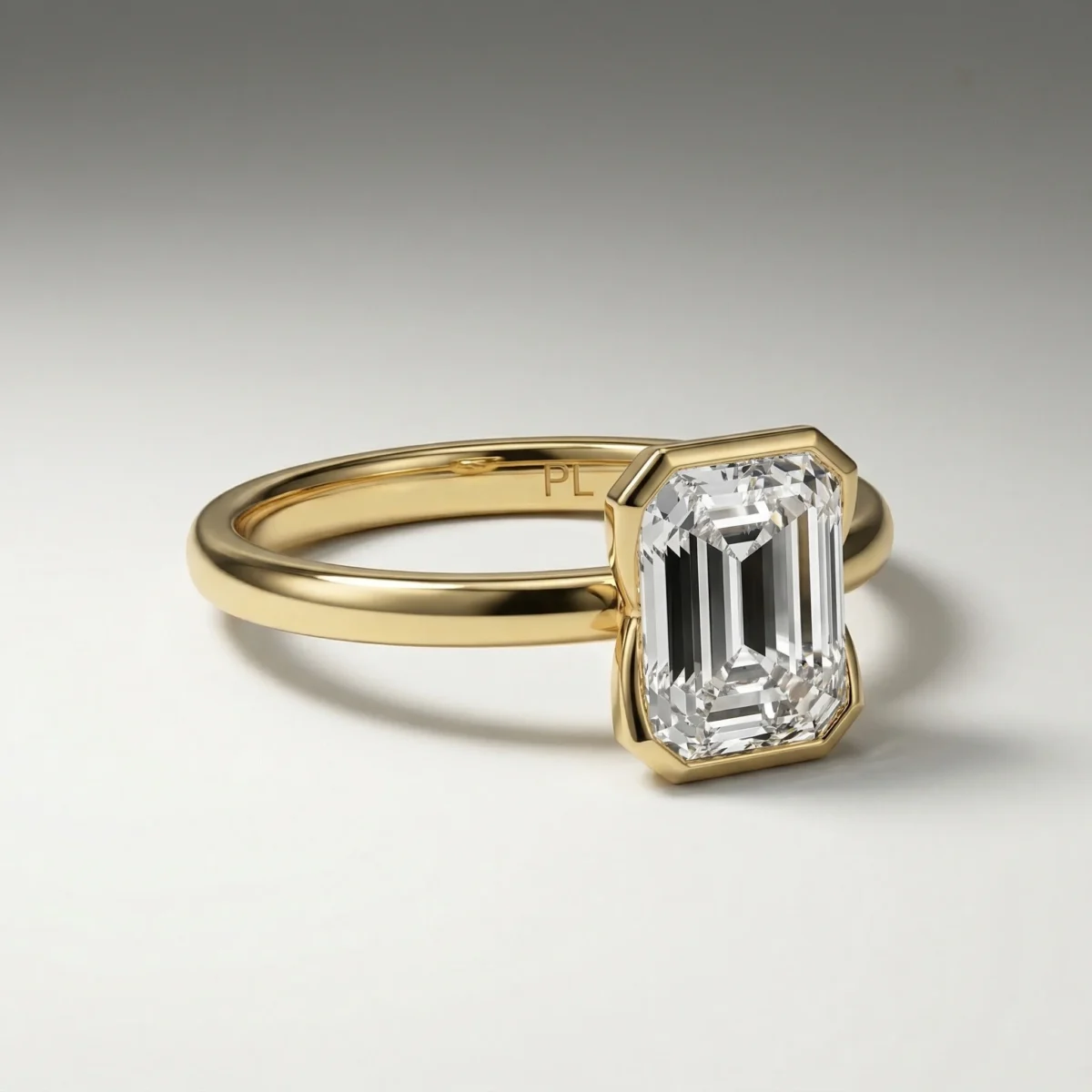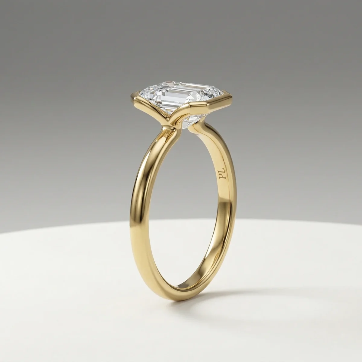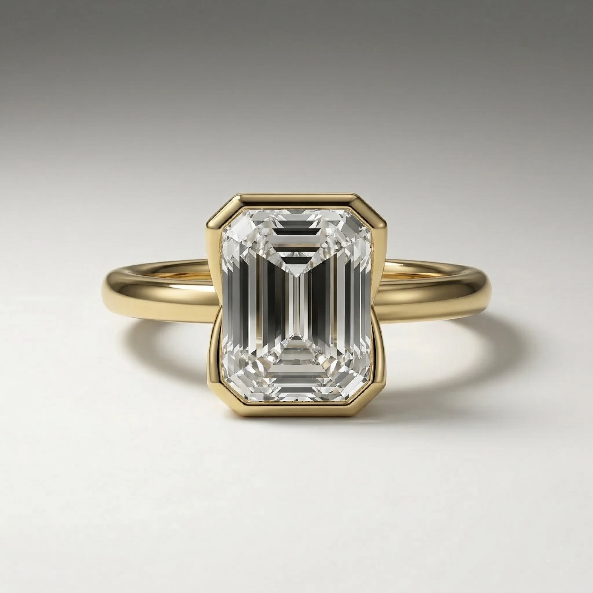 Aeris is a design-forward emerald-cut ring centered around a 1.00 ct lab grown diamond, defined by its open shank and partial bezel structure. This ring is positioned as a modern fashion piece, where the stone appears visually suspended while remaining structurally secured. The elongated emerald silhouette enhances clarity and directional presence without relying on excess ornamentation.The structure eliminates the traditional basket, replacing it with asymmetric support arms that rise from the shank and hold the stone through a controlled partial bezel. This configuration creates visible pavilion clearance, allowing light interaction while preserving a clean architectural profile. The open shank transitions smoothly into the support system, maintaining consistent thickness and curvature.Customization is supported through proportional scaling within a recommended 0.70–1.50 ct range. The ring can be produced in multiple metal tones while maintaining structural integrity. Pricing adjusts transparently based on selected configuration. For clients seeking an alternative, Moissanite is offered as an affordable luxury option through guided consultation.Each piece includes a jewelry certificate, with optional third-party certification from IGI or SGL. Production is completed within 15–35 days, with global shipping available. The result is a structurally distinct ring built with clarity, precision, and material consistency.STRUCTURED SPECIFICATIONS • Product Type: Ring • Design Structure: Open Shank Partial Bezel Solitaire • Primary Shape: Emerald • Stone Layout: Single Stone • Default Display Carat: 1.00 ct • Recommended Carat Range: 0.70–1.50 ct • Stone Type: Lab Grown Diamond (primary), Moissanite (Affordable luxury alternative via consultation) • Metal Options: Gold, Platinum • Customization Level: Structural Adjustable • Certification: Included (IGI / SGL available) • Production Timeline: 15–35 days