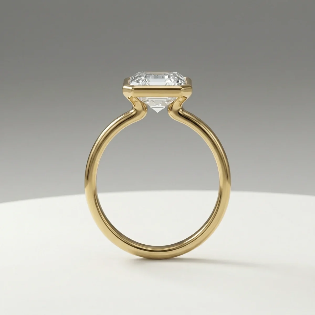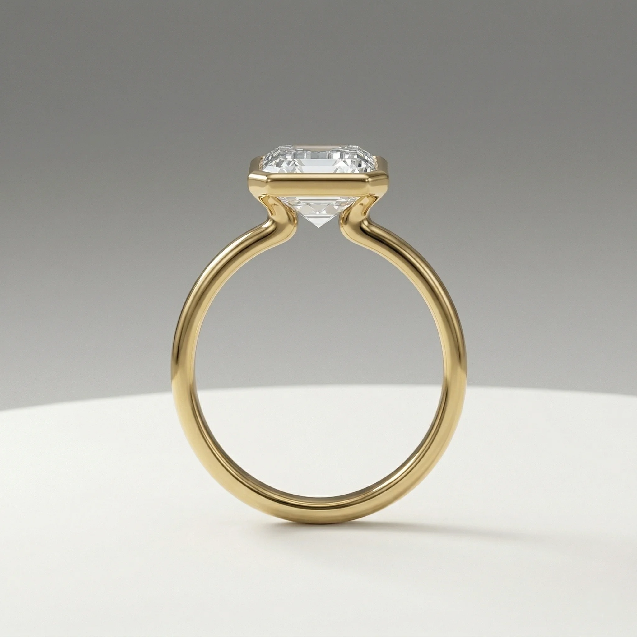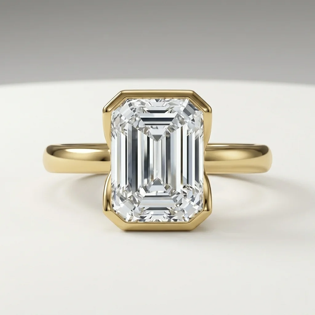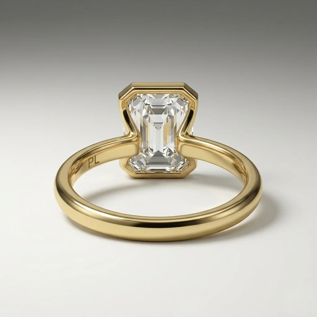 Aeris is a design-forward emerald-cut ring centered around a 1.00 ct lab grown diamond, defined by its open shank and partial bezel structure. This ring is positioned as a modern fashion piece, where the stone appears visually suspended while remaining structurally secured. The elongated emerald silhouette enhances clarity and directional presence without relying on excess ornamentation.The structure eliminates the traditional basket, replacing it with asymmetric support arms that rise from the shank and hold the stone through a controlled partial bezel. This configuration creates visible pavilion clearance, allowing light interaction while preserving a clean architectural profile. The open shank transitions smoothly into the support system, maintaining consistent thickness and curvature.Customization is supported through proportional scaling within a recommended 0.70–1.50 ct range. The ring can be produced in multiple metal tones while maintaining structural integrity. Pricing adjusts transparently based on selected configuration. For clients seeking an alternative, Moissanite is offered as an affordable luxury option through guided consultation.Each piece includes a jewelry certificate, with optional third-party certification from IGI or SGL. Production is completed within 15–35 days, with global shipping available. The result is a structurally distinct ring built with clarity, precision, and material consistency.STRUCTURED SPECIFICATIONS • Product Type: Ring • Design Structure: Open Shank Partial Bezel Solitaire • Primary Shape: Emerald • Stone Layout: Single Stone • Default Display Carat: 1.00 ct • Recommended Carat Range: 0.70–1.50 ct • Stone Type: Lab Grown Diamond (primary), Moissanite (Affordable luxury alternative via consultation) • Metal Options: Gold, Platinum • Customization Level: Structural Adjustable • Certification: Included (IGI / SGL available) • Production Timeline: 15–35 days