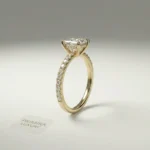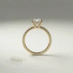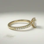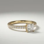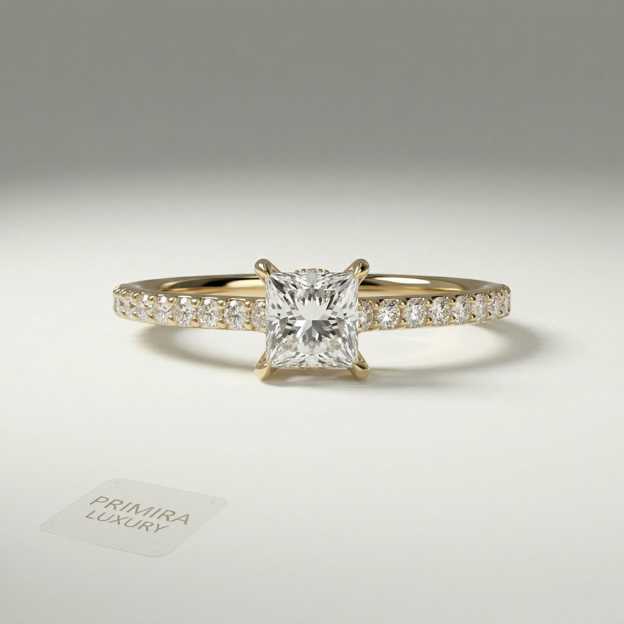 Aureli is defined by a 0.30 ct princess-cut lab grown diamond, elevated above a refined pavé-set band for balanced brilliance. Crafted primarily in 18K gold or platinum, the structure maintains a clean, proportional silhouette with precise prong alignment. The design supports proportional customization across carat sizes while preserving its original geometry. Each piece includes certification and is produced within a controlled, transparent timeline.