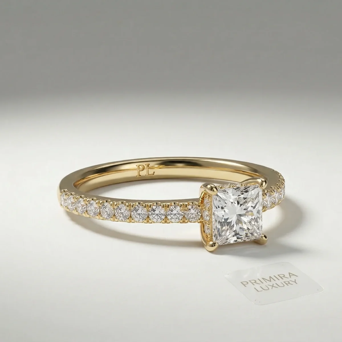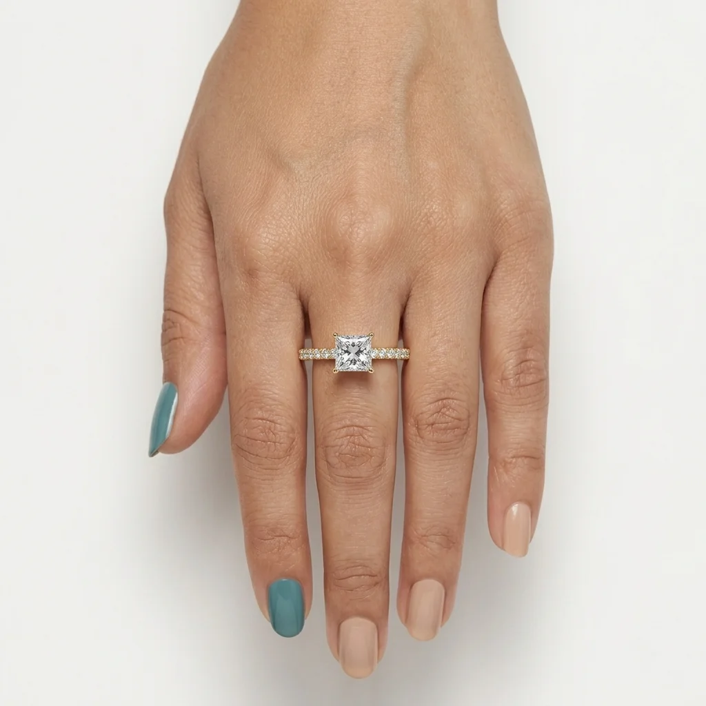 Aureli – Princess Solitaire Pavé Lab Grown Diamond Engagement Ring