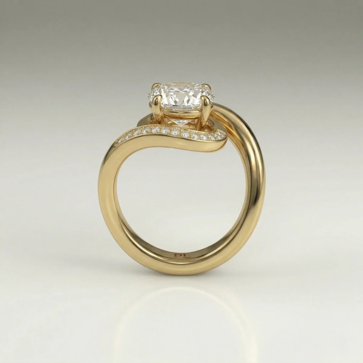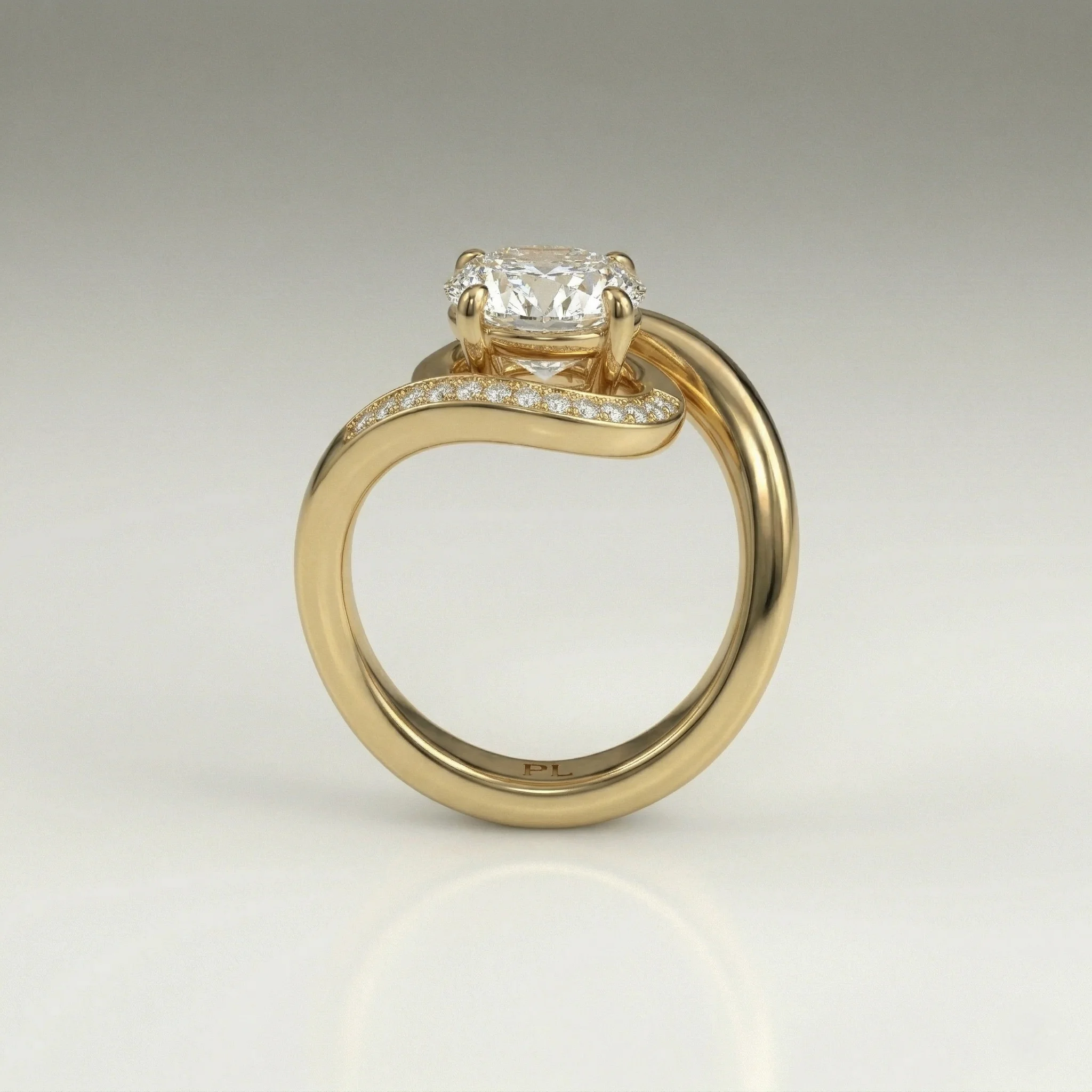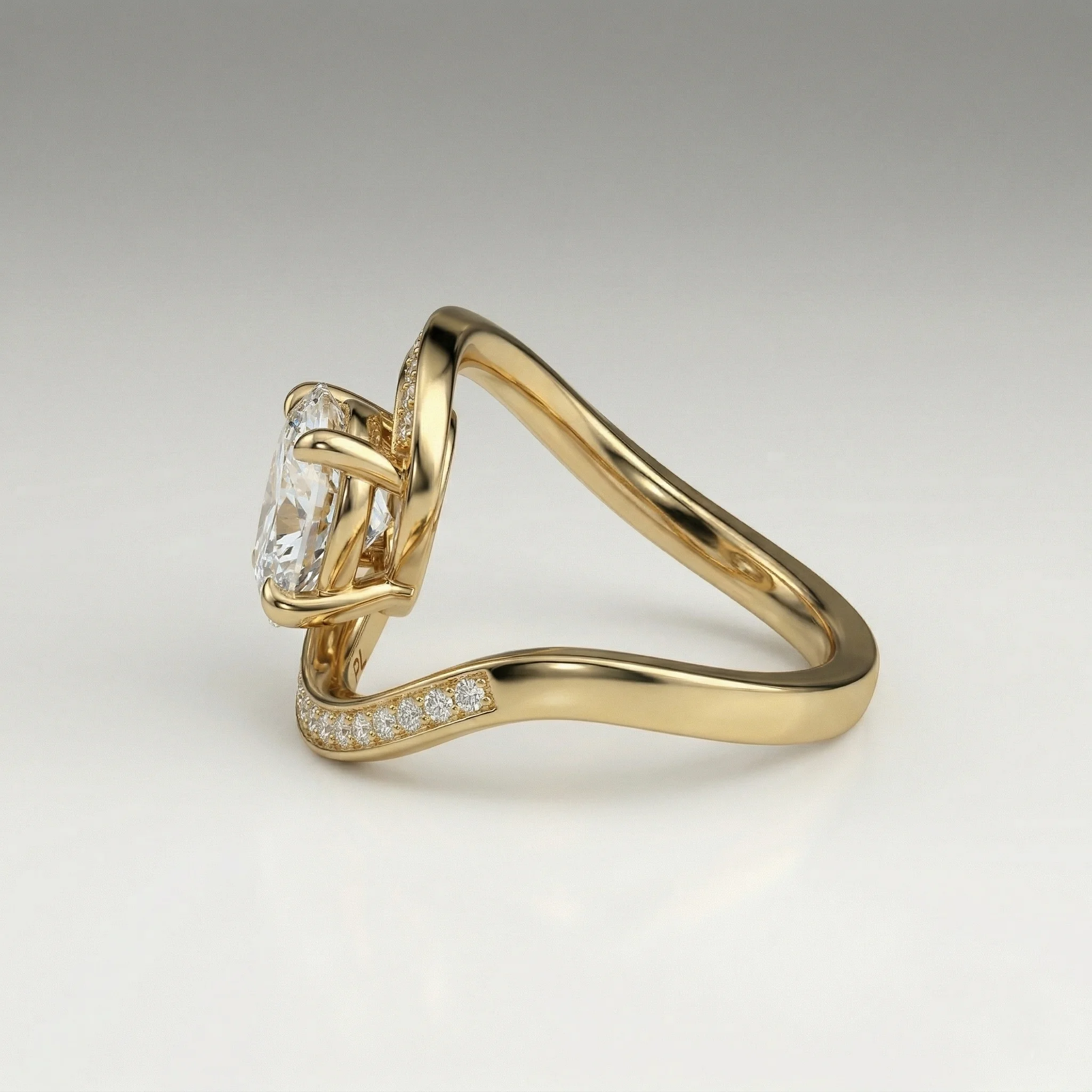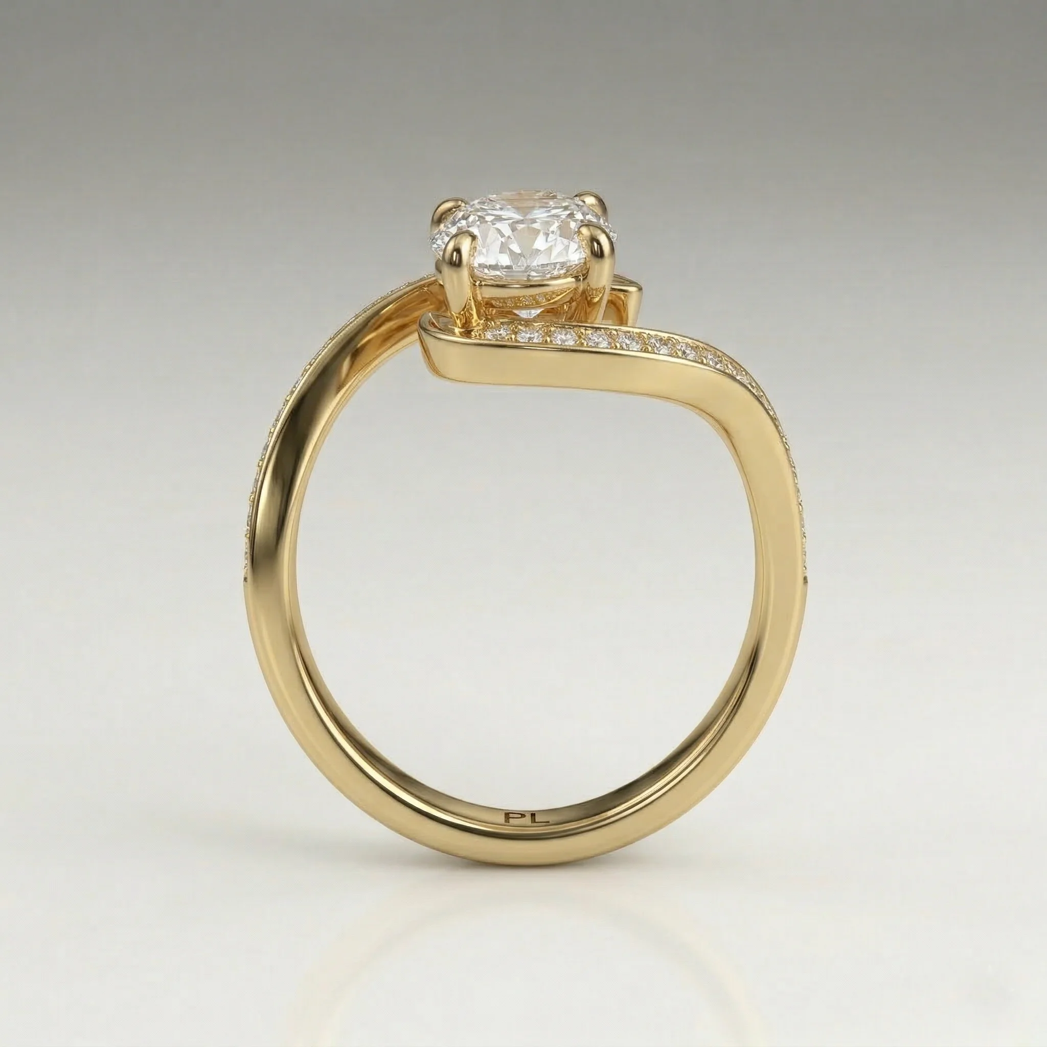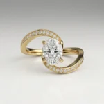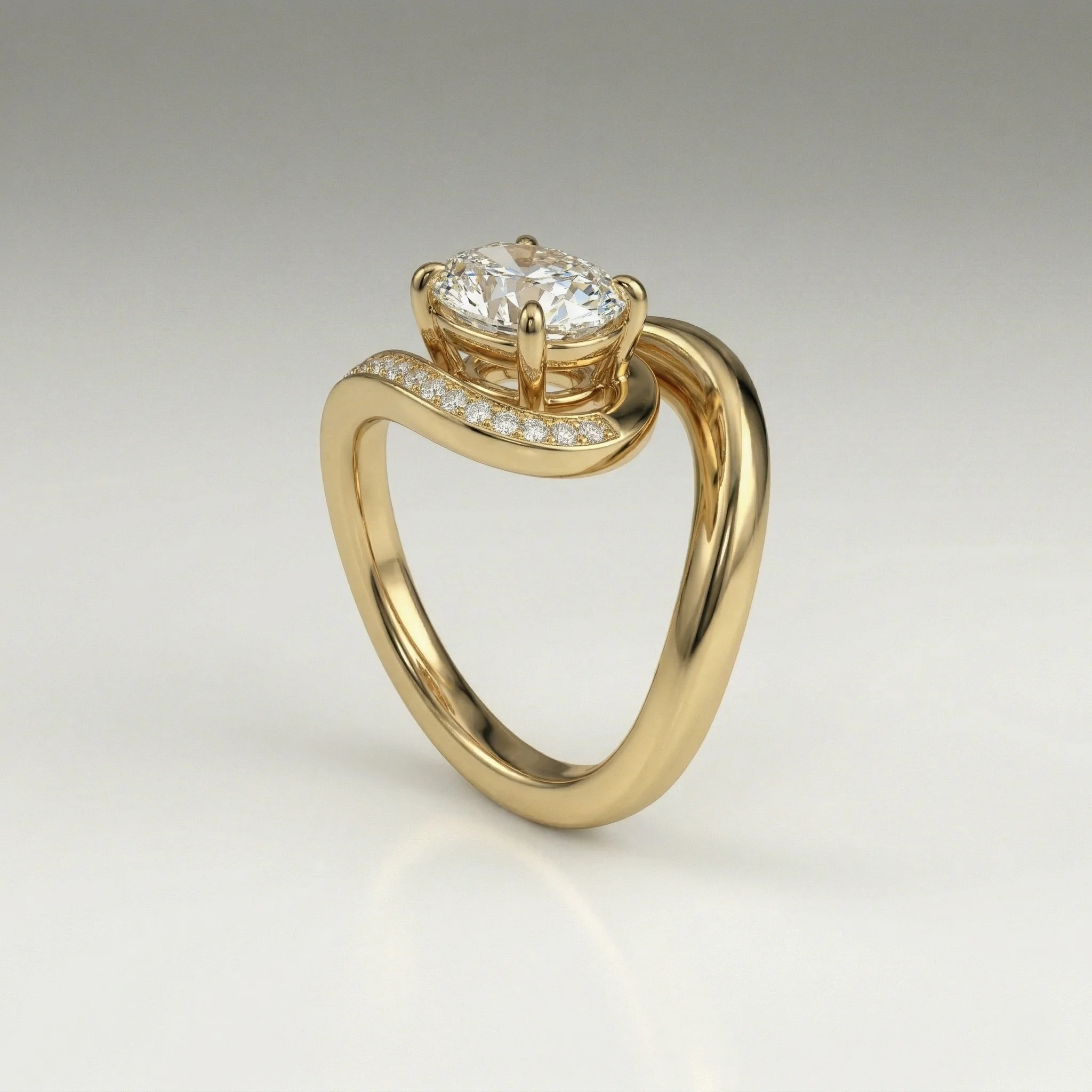 Defined by a fluid bypass structure, this ring centers a 1.0 carat oval lab grown diamond within a clean, elevated setting. Pavé-set accents along the shoulders introduce controlled brilliance without disrupting the core silhouette. Crafted primarily in precious metal options with proportional customization support, the design adapts across a 0.75–1.50 carat range. Each piece includes certification and follows a structured production timeline.