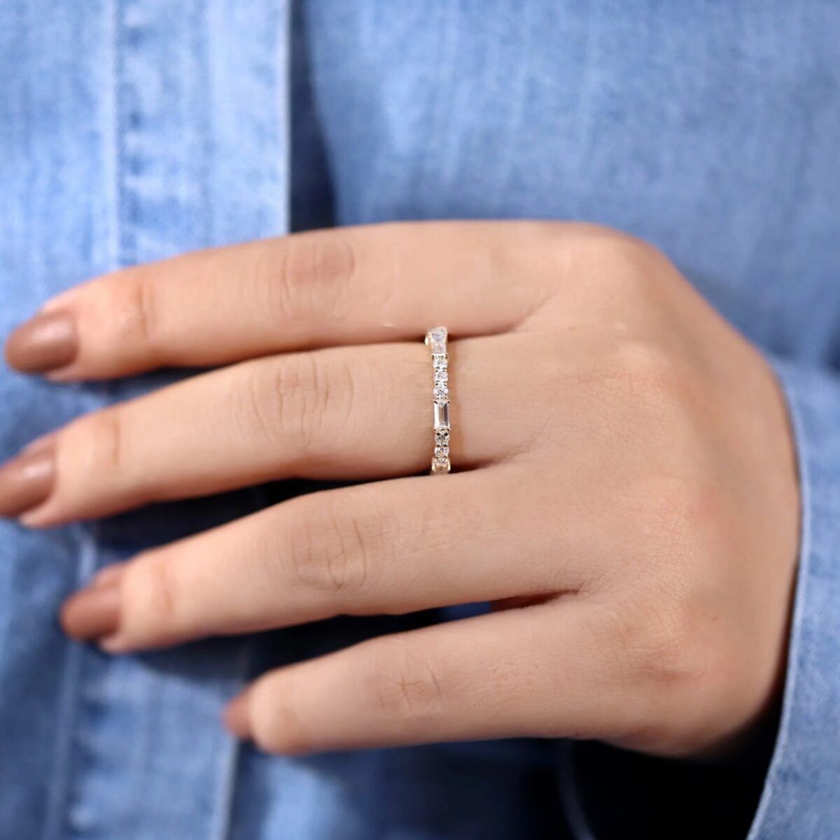 Celebrate life’s radiant milestones with the Celestial Circle full eternity ring, featuring 1.5 carats of baguette-cut white (DEF) diamonds. Fully customizable in your preferred metal and tone. Find your forever sparkle — view more handcrafted designs.