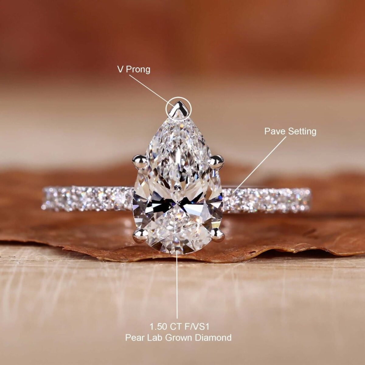 Elegance 1.5 Carat Pear Cut Pave Diamond Ring