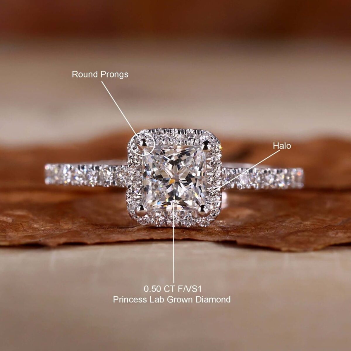 Elegance 2 Carat Princess White Diamond Pave Ring