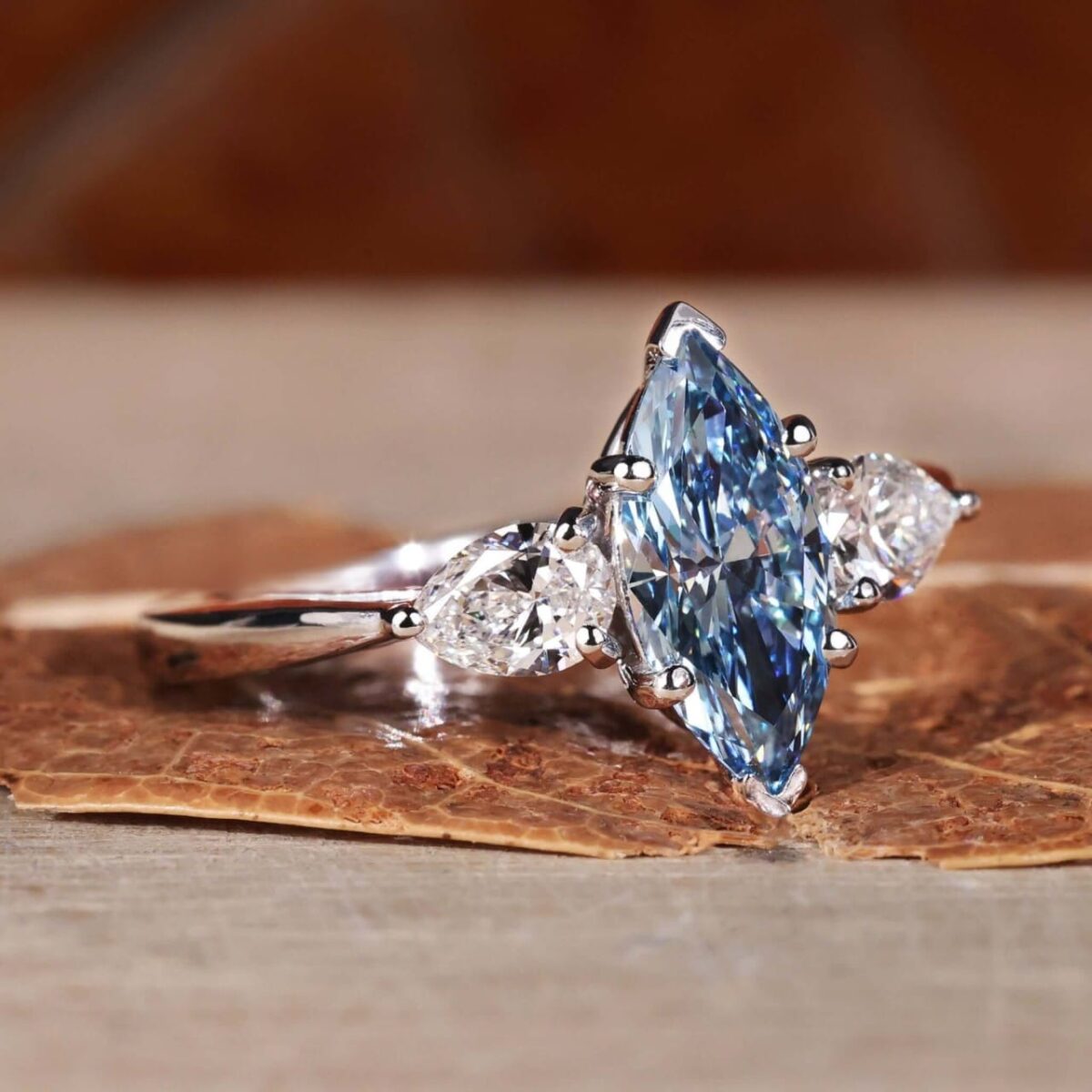 Eternal Grace 2 Carat Marquise Fancy Blue Trio Engagement Ring