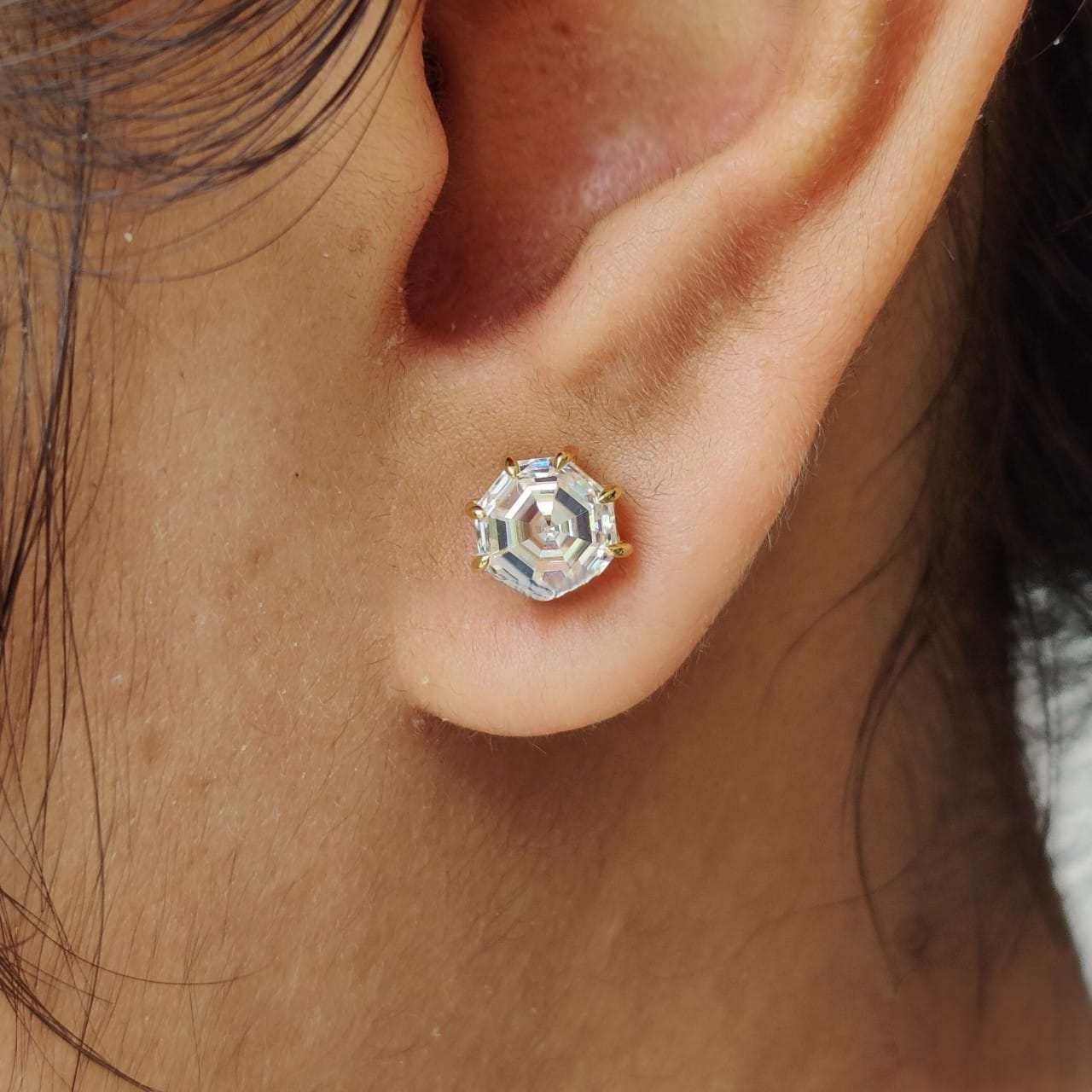 Geometric Grace: 2.5 Carat Octagon White Stud Earrings