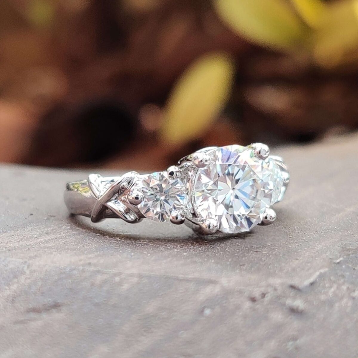Heart and Arrows 1.5 Carat Round Moissanite Trio Sparkle Ring