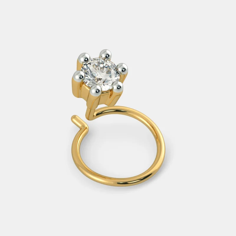 Celebrate bold expression with The Juniper Charm Diamond Nose Pin, featuring a 0.25 carat round-cut white (DEF) diamond. A chic tribute to timeless love – customize it in your favorite tone and metal. Looking for timeless elegance? Explore more exquisite styles.