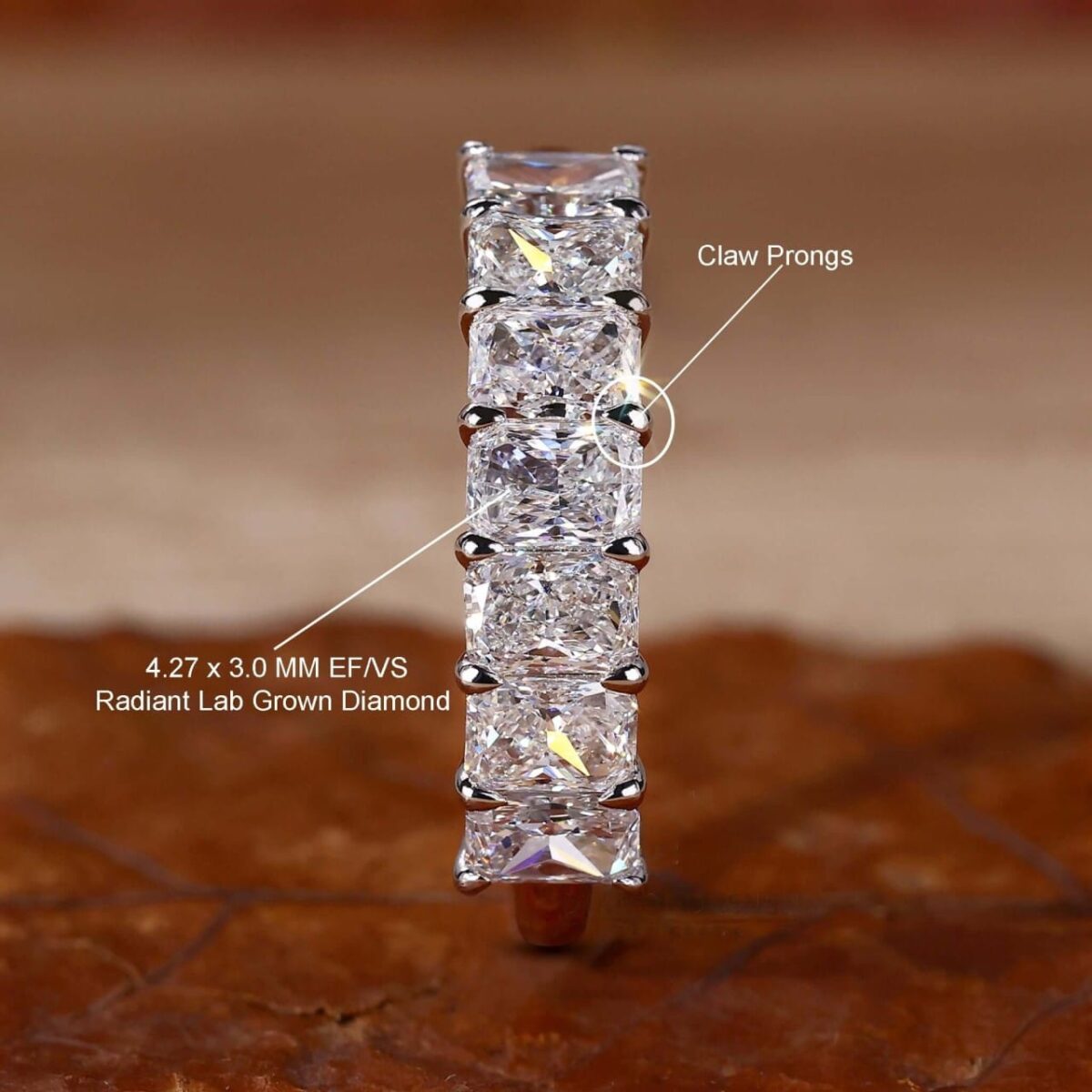 The Luminous Radiant eternity ring captures effortless charm with 2.5 carats of radiant-cut white (DEF) diamonds in a flawless-cut silhouette. Fully customizable to your chosen metal and tone. Let your story shine. Shop more luxury pieces today.