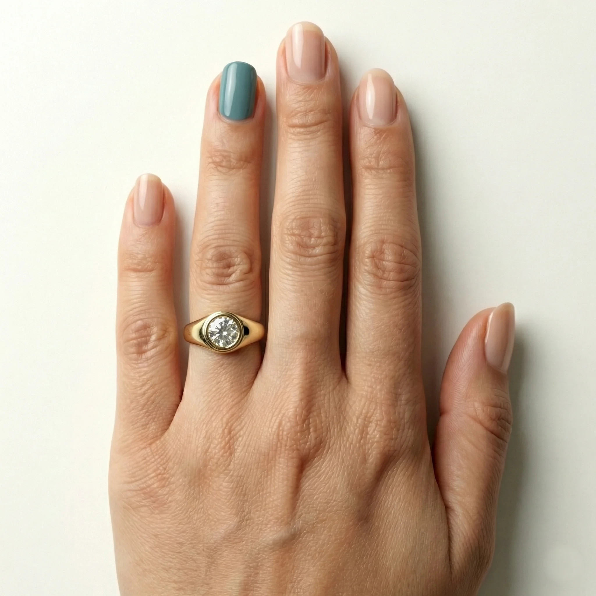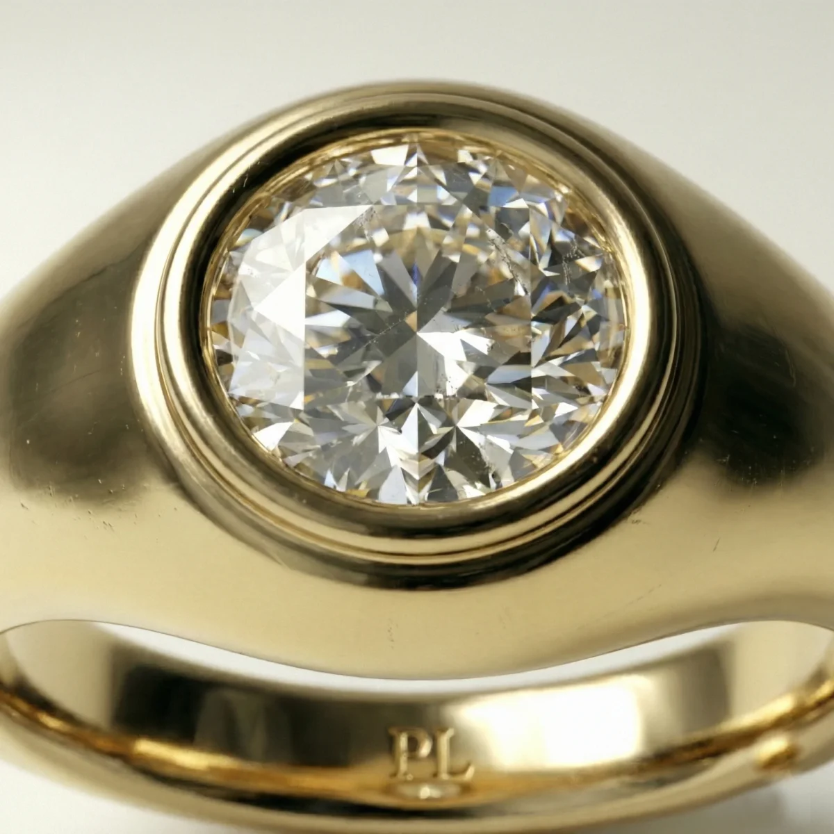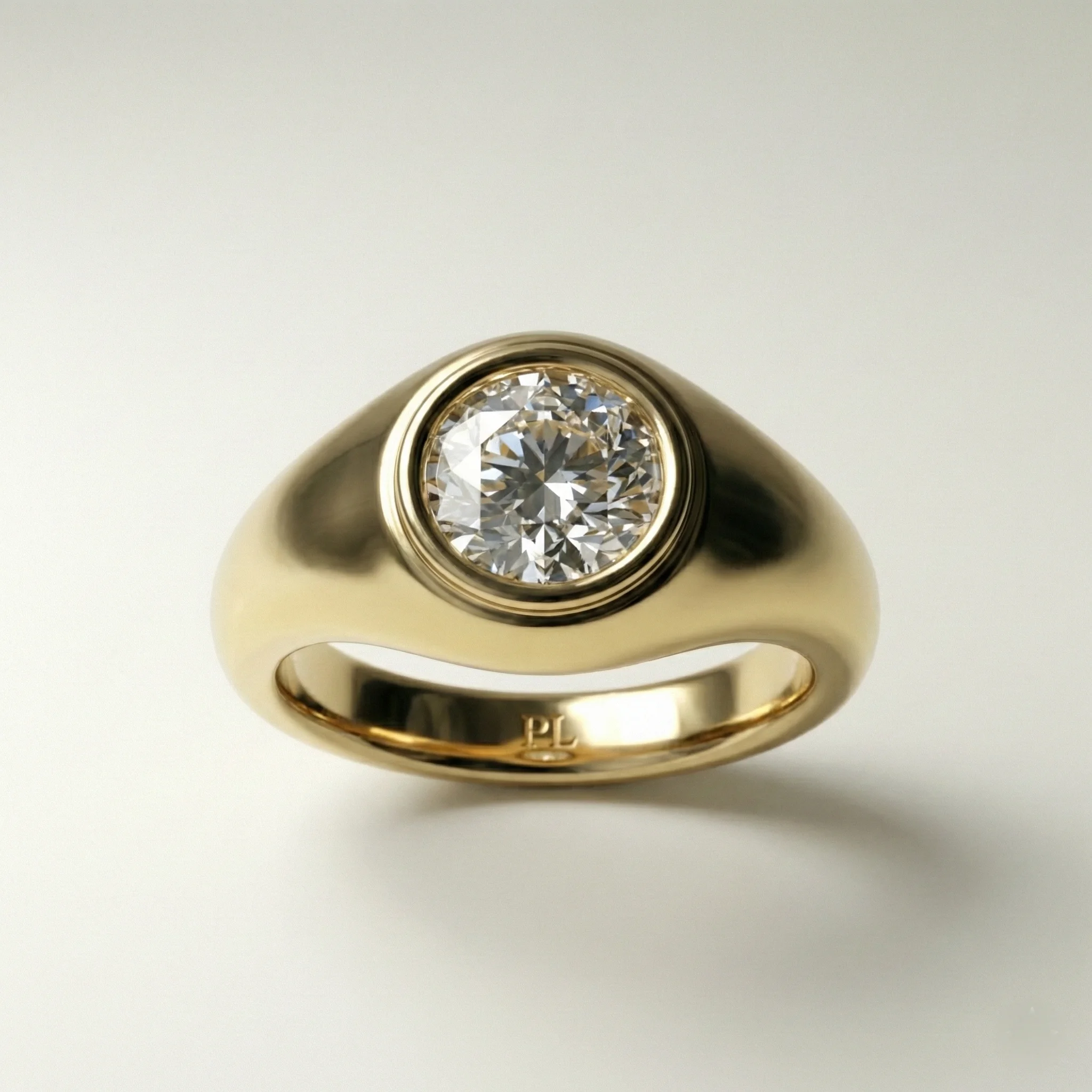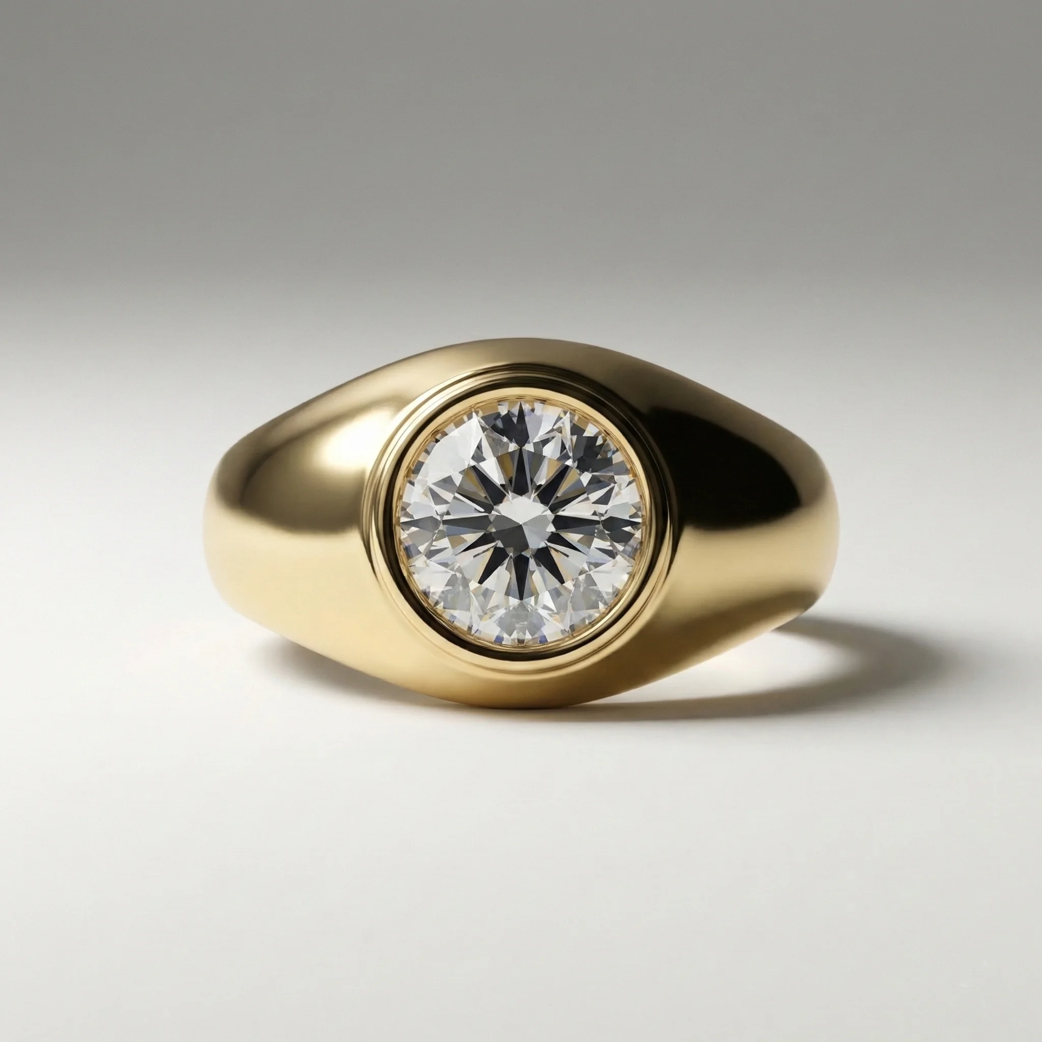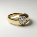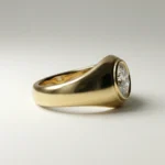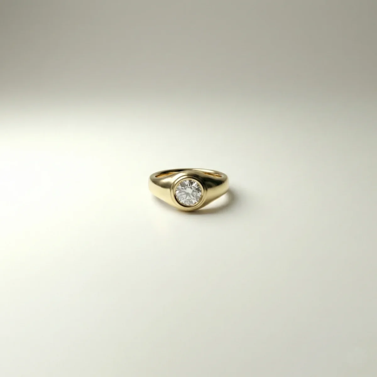 Round bezel solitaire 1.00 ct lab grown diamond ring in yellow gold signet-style design