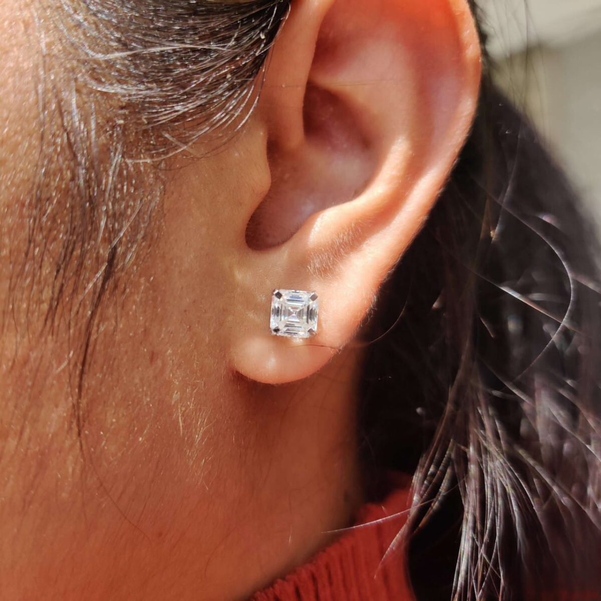 Drawing inspiration from the opulence of the Regal Maharani era, the Radiant Elegance Asscher Cut Studs embody refined royalty and quiet confidence. Designed for the artfully unique, these 2.5 carat Asscher-cut white moissanites radiate clarity with a touch of sculpted elegance, making them an unforgettable anniversary gift.