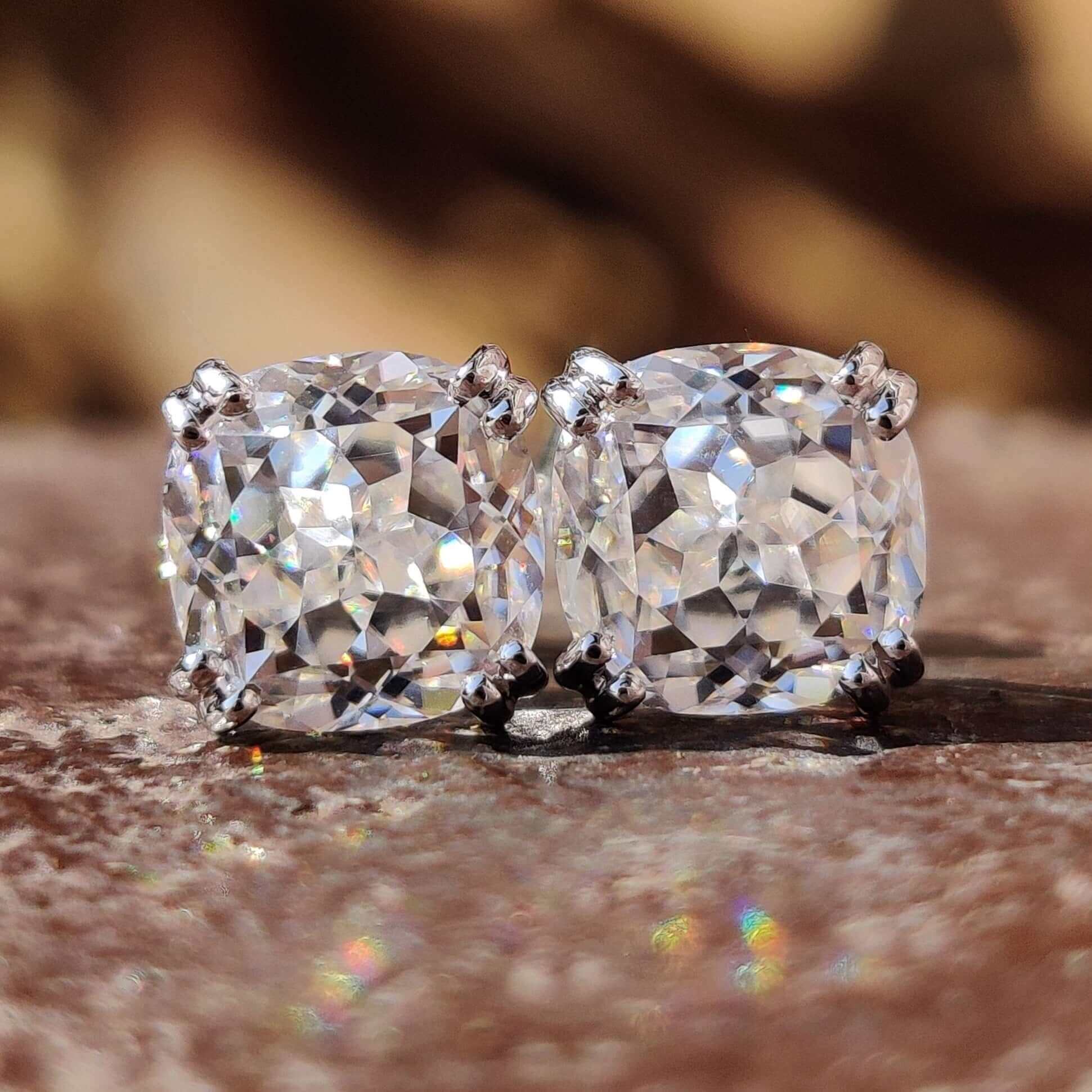 Infused with the elegance of the Vintage Parisian era, Radiant Grace celebrates the spirit of the romantic dreamer, capturing a sense of quiet confidence in every detail. These 2.5 carat cushion Rensu-cut white (DEF) moissanite studs are framed in a crystalline brilliance, lending a luminous presence to any look.