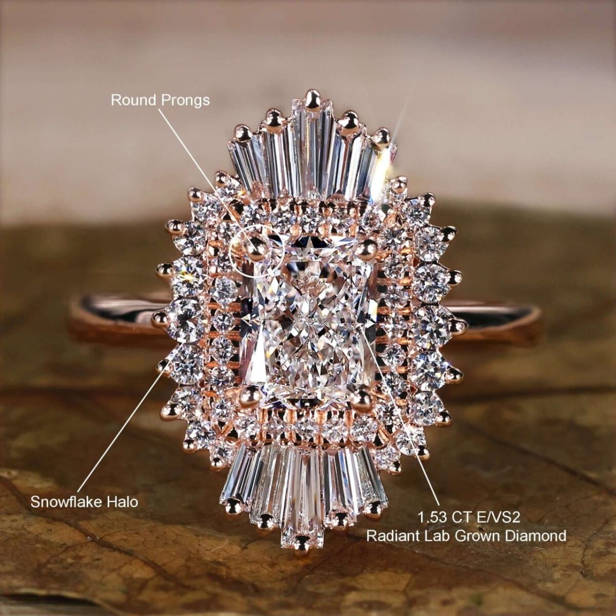Snowflake Elegance 2 Carat Radiant White Diamond Halo Ring