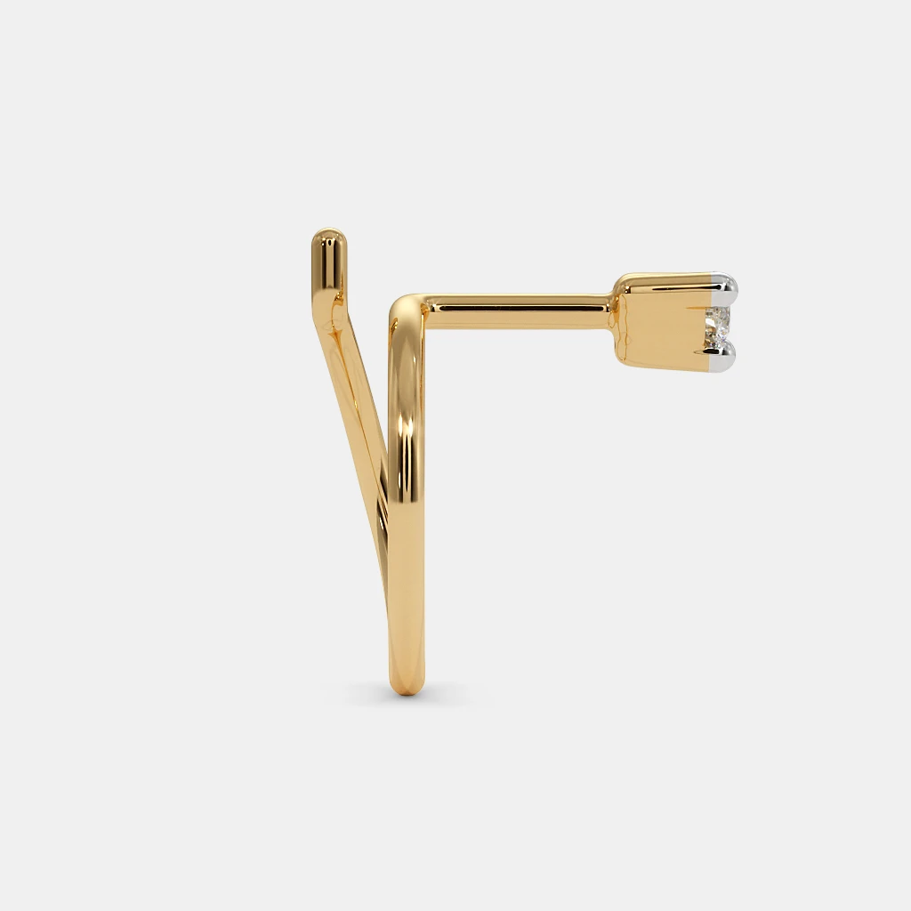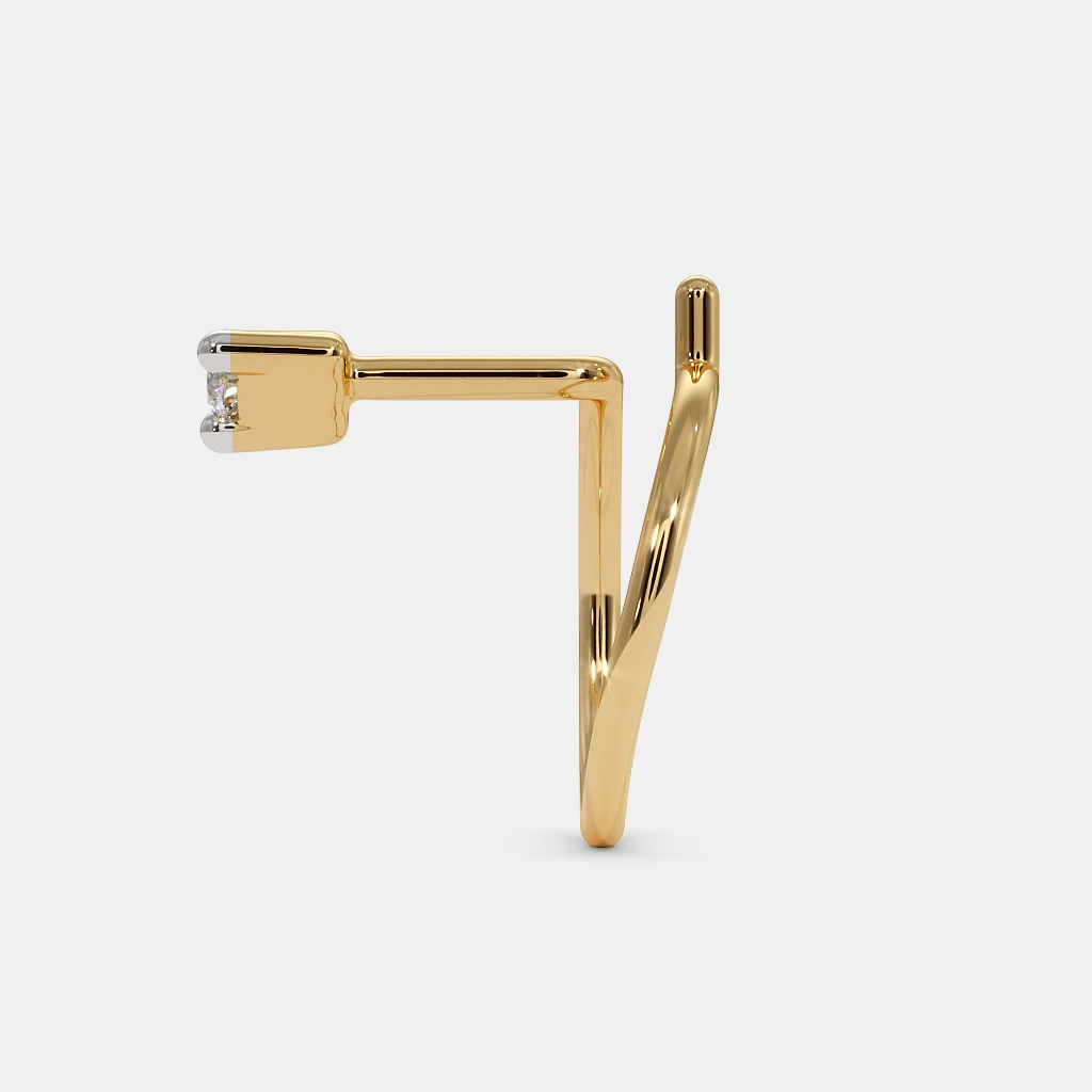 Drawing from the Regal Maharani design era, The Allium Spark Diamond Nose Pin is a tribute to enduring beauty with a modern twist. Made for the Classic and Timeless woman, it radiates Empowered Femininity with a 0.1 carat round white (DEF) diamond and silken-polished band that glows from every angle.