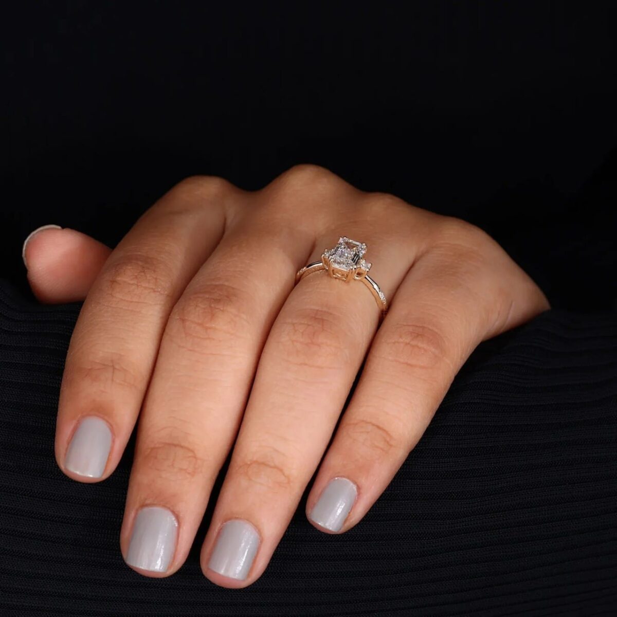 Perfect for modern engagements with bold expression, it’s also available in white, yellow, or rose tones and can be customized in 10kt, 14kt, 18kt gold, or silver. For more statement styles that celebrate individuality, explore our three-stone lab-grown diamond ring collection.