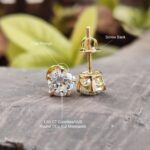 Each stud features a 2 carat round-cut white (DEF) moissanite secured in a classic five-prong setting, elevated by a tapered cathedral arch. Set in 14kt Gold with a warm Yellow tone, these earrings capture the magic of a New Year’s toast, lovingly gifted after a heartfelt confession.